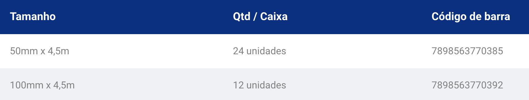 100mm x 4,5m | 12 unidades | 7898563770392 |